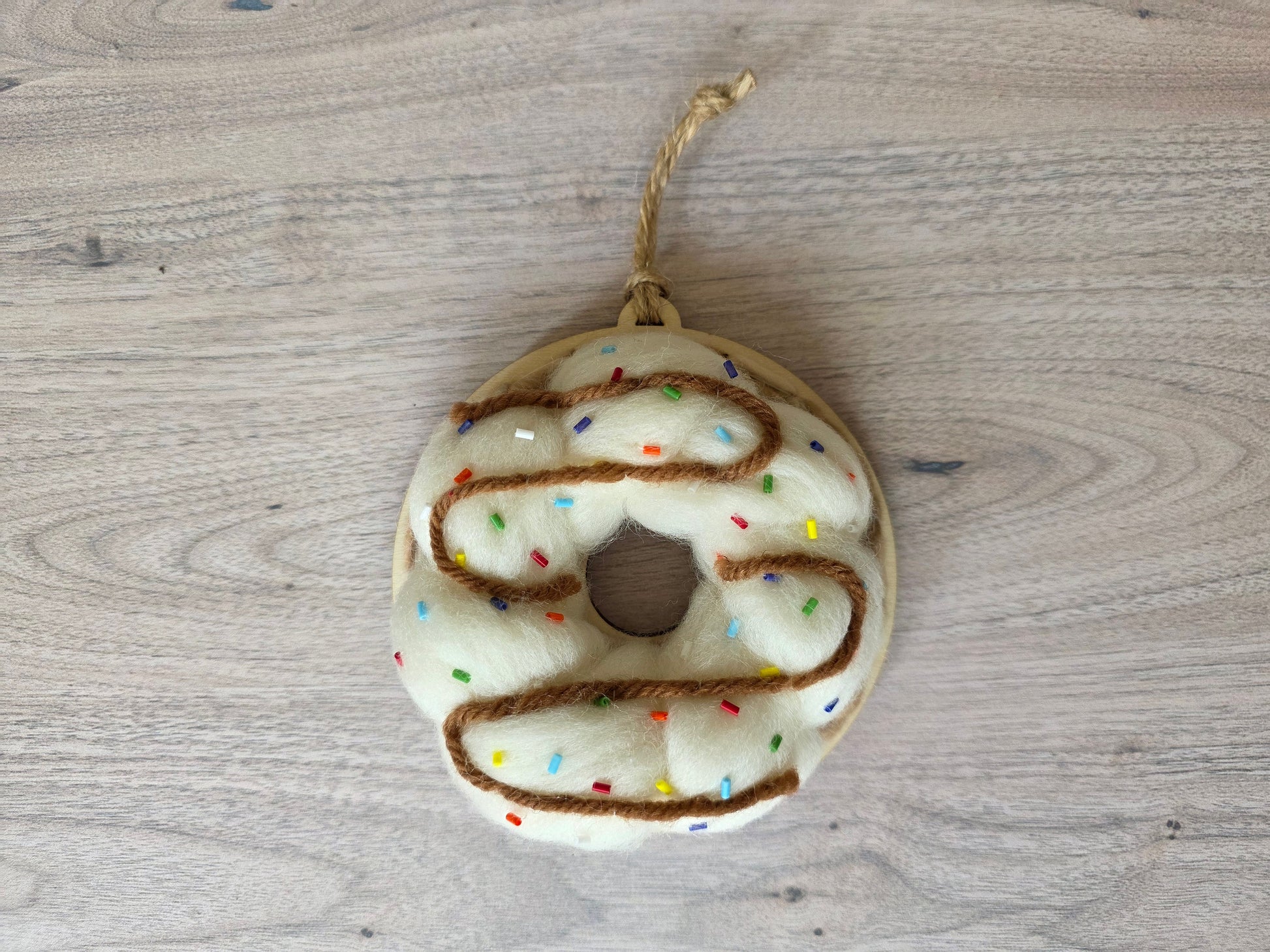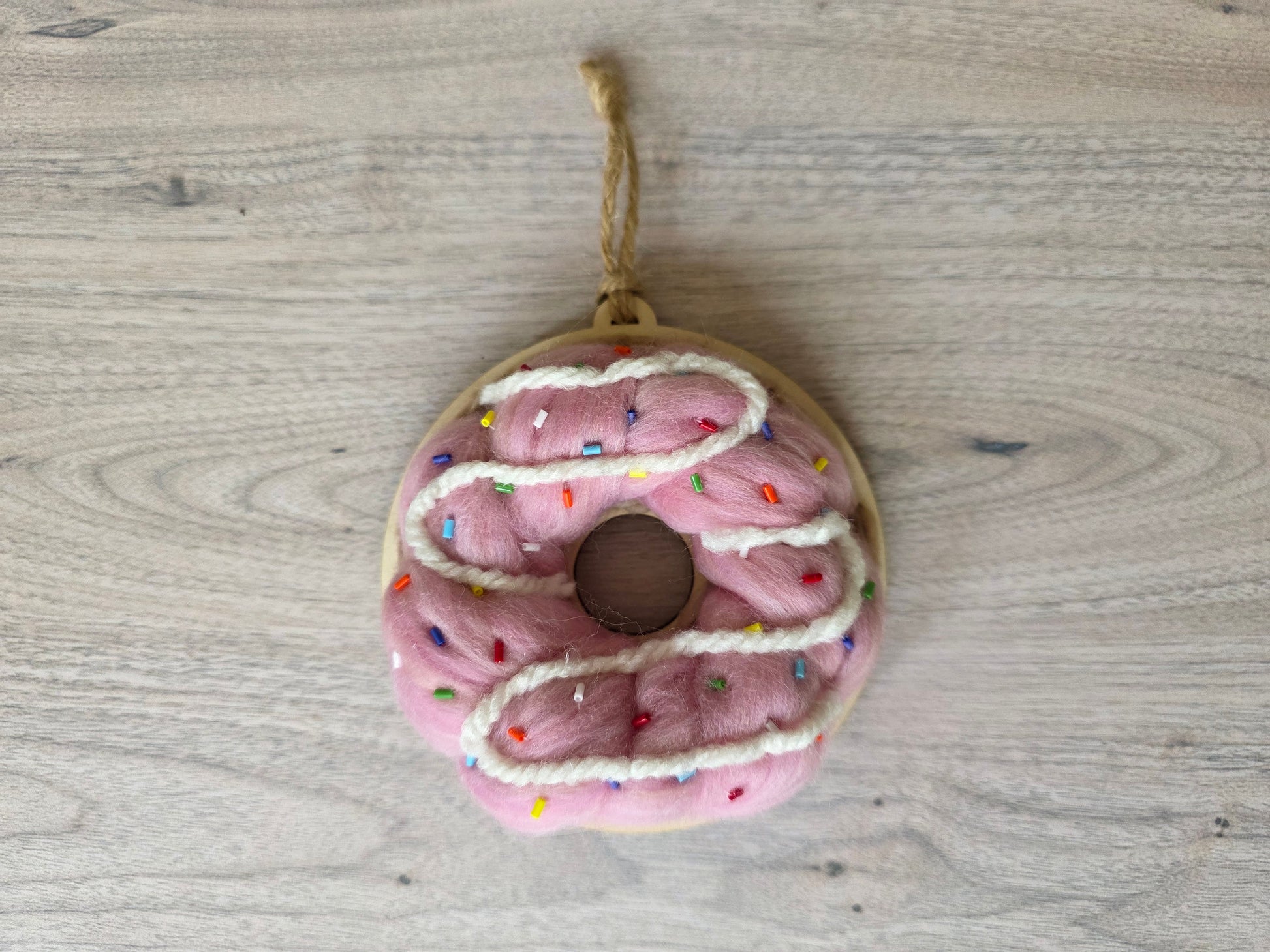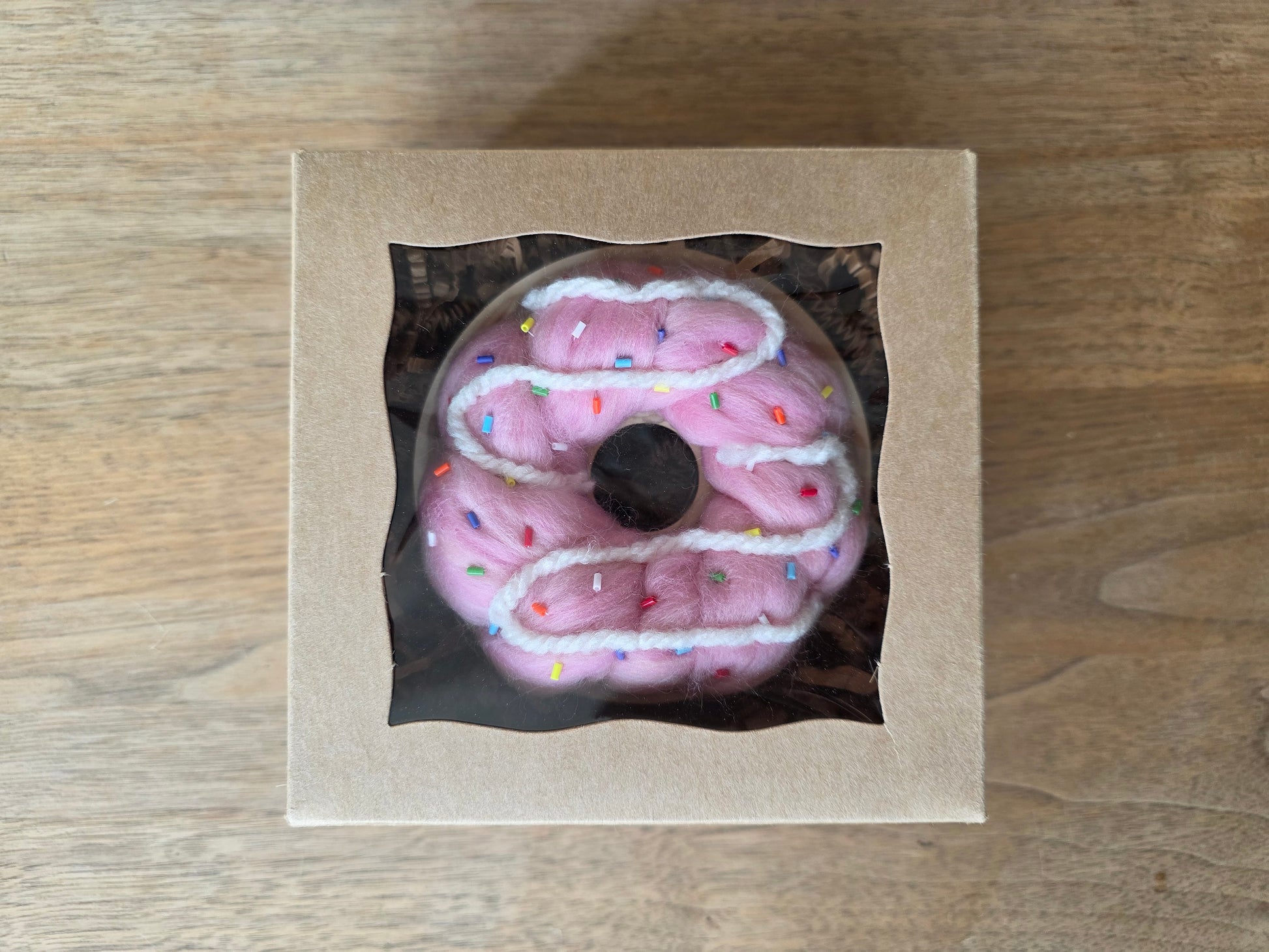 My new woven donut ornaments! So many little, time-consuming details go into these little guys, like the individual little bead "sprinkles" I've sewn on. Each measure to be about 4" in diameter and will come individually boxed, making them a perfect little gift. These little guys are going to be very limited due to the availability of supplies