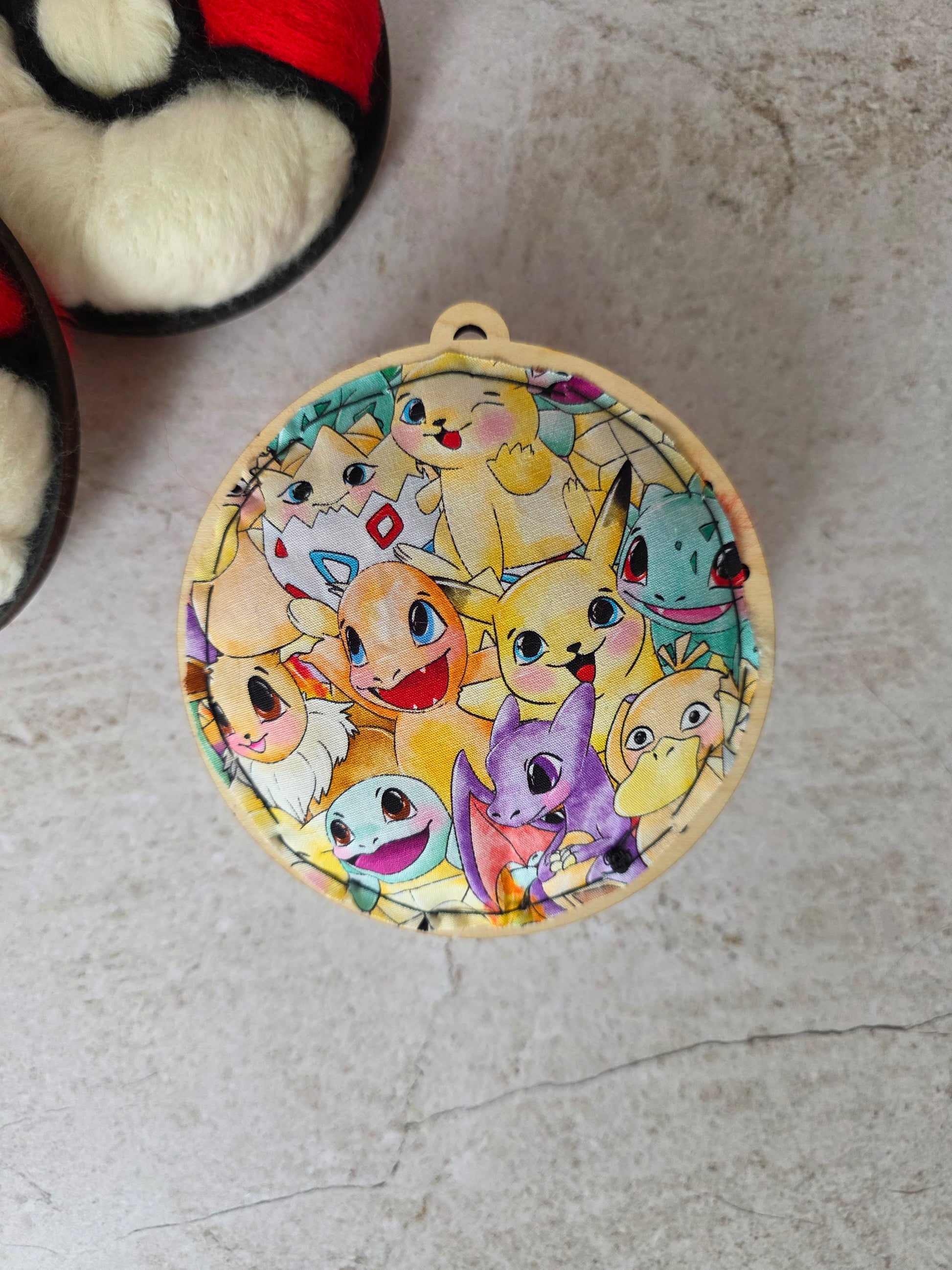 Pikachu is a cute little amigurumi plushie/toy and the pokeball is a little wall hanging that could also double as an ornament around the holidays. Hang it with the ribbon it'll come with, or remove it and hang it with just a small nail (both options are pictured).